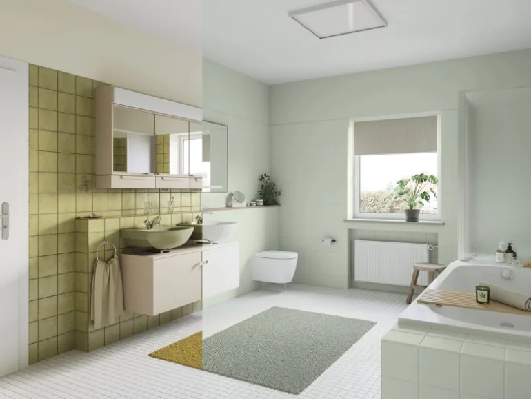 Der stilvolle Farbton Silberfarn verleiht Ihren Räumen eine harmonische Optik. Kombinieren Sie den Fliesen-Lack ideal mit Alpina Wandfarben und Möbel-Lacken aus der Bad & Küche-Produktlinie, um ein stimmiges und individuelles Raumkonzept zu schaffen.
