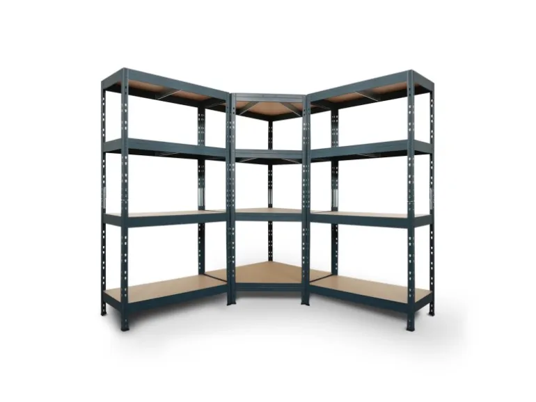 Das Eck Schwerlast-Steckregal Rivet ist eine Revolution für Ihre Ecken. Es nutzt die max. Raumfläche, stellt so mehr Lagerkapazitäten zur Verfügung und ist deshalb bestens geeignet für den Einsatz in der Garage, im Keller oder anderen Räumen. Die zwei Unterzüge pro Boden, verleihen dem Metallregal eine überdurchschnittliche. Das Eck Schwerlastregal gibt Ihnen die Möglichkeit selbst die Ecken als Stauraum auszunutzen und durch seinen 135° Winkel kommt man leicht an die gewünschten Gegenstände wieder ran.