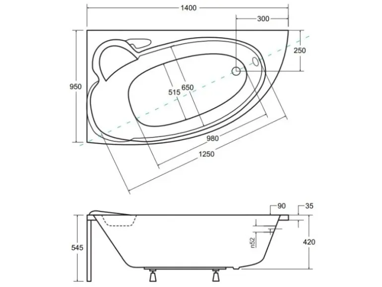 Bad Land Badewanne Eckwanne FINEZJA 140×95 Links Mit Styroporverkleidung Ablauf Füße