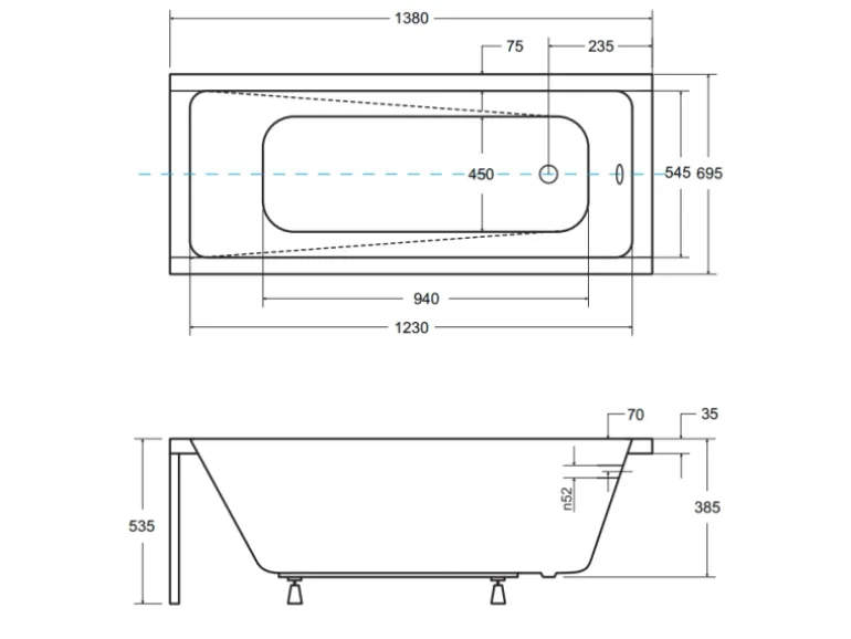 Bad Land Badewanne Rechteck MODERN 140×70 Mit AcrylSchürze Ablauf Füße