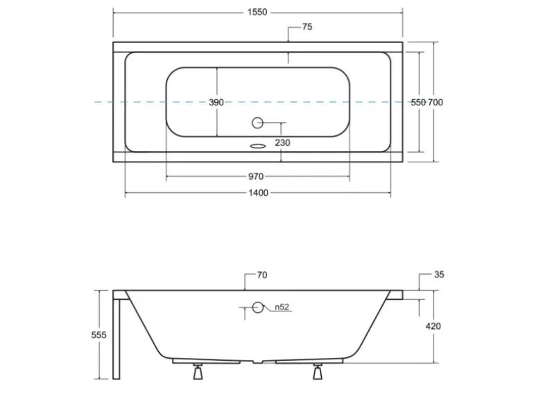 Bad Land Badewanne Rechteck QUADRO 155×70 Ablauf Füße