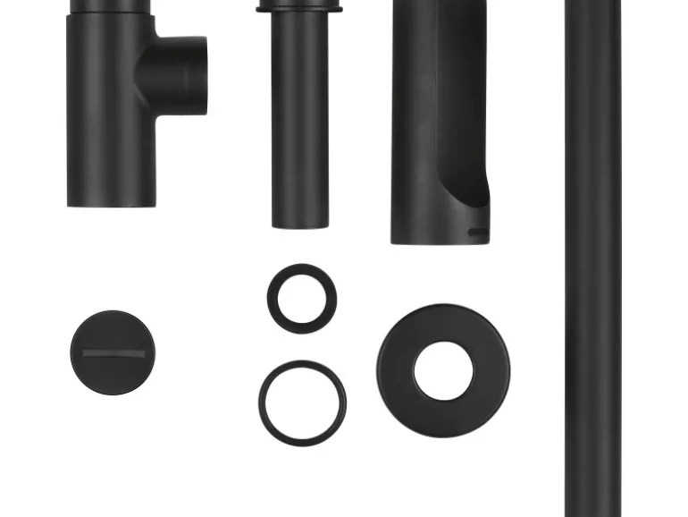 Inkl. Rosette, Anschlussrohr und Tauchrohr