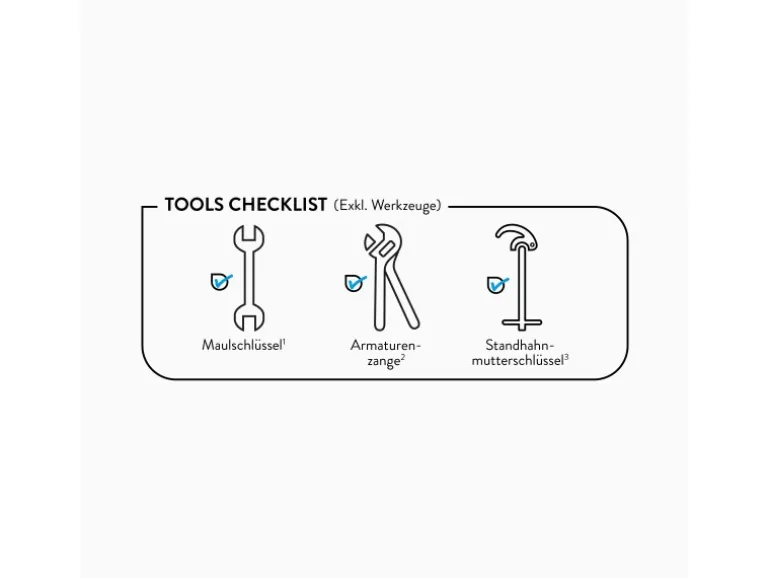 Inkl. Anschlussschläuchen und Befestigungsmaterial