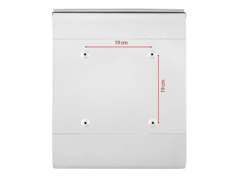 Der Postkasten besteht aus weißfarben pulverbeschichtetem Stahl. Der Briefkasten wird mit Montagematerial und zwei Schlüsseln.