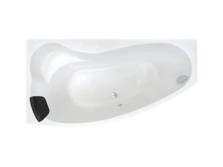 Die dreieckige Raumsparwanne ist durch die optimierte Form bequem und wassersparend zugleich.