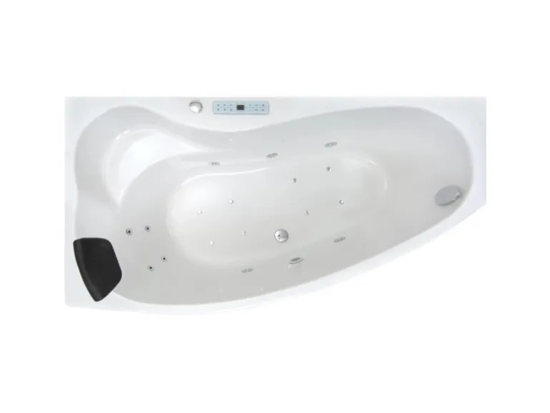 Der Whirlpool besteht aus hochwertigem reinem Sanitäracryl. Dieses Qualitätsmerkmal sorgt für eine optimale Wärmespeicherung sowie für ein angenehmes, warmes Hautgefühl beim Einsteigen in die Badewanne. Darüber hinaus wird im Laminierverfahren eine Glasfaserverstärkung auf die Außenseite der Eckwanne aufgetragen. Einzeln höhenverstellbare Füße schaffen einen Bodenausgleich von bis zu 10 cm. Das Fußgestell ist aus massivem rostfreiem Stahl und alle Eisenkleinteile sind von der deutschen Qualitätsmarke Würth.