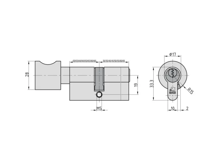 Basi – AS – Profil-Knaufzylinder – K30/50 mm – Verschiedenschließend