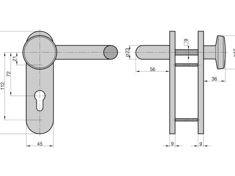 Türstärken 44-66 mm, Abstand 72 mm, Vierkantstift 9 mm