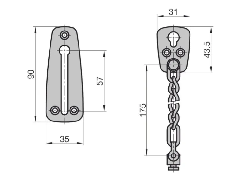 Kettenlänge: 175 mm, einfache Montage an der Türe