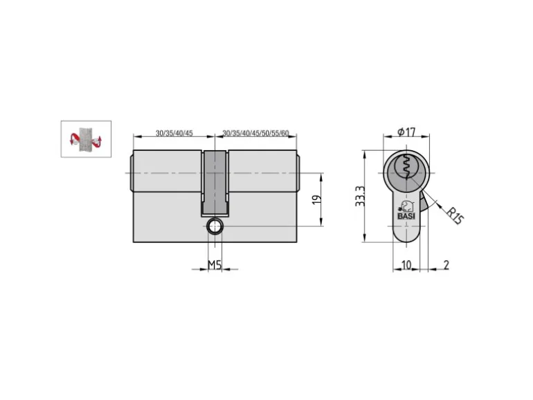 Basi – V50 – Profil-Doppelzylinder – 30/50 mm – Gleichschließend – Not- und Gefahrenfunktion