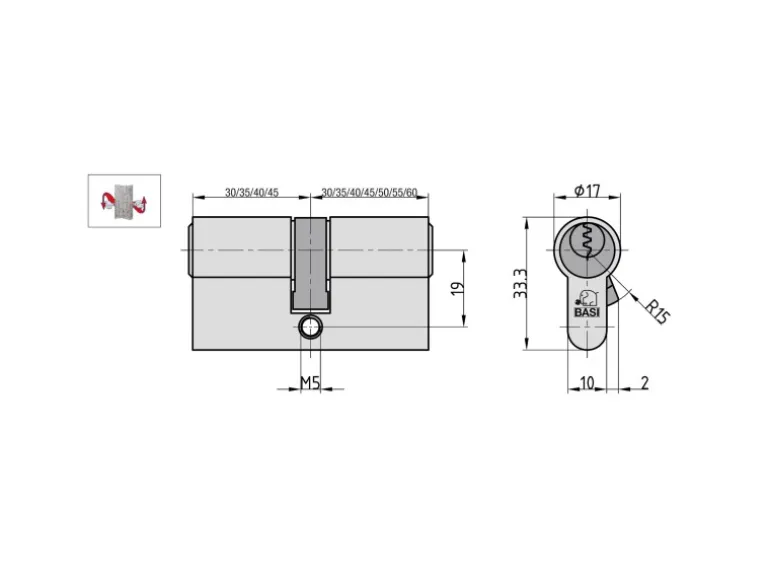 Basi – V50 – Profil-Doppelzylinder – 40/45 mm – Verschiedenschließend – Not- und Gefahrenfunktion