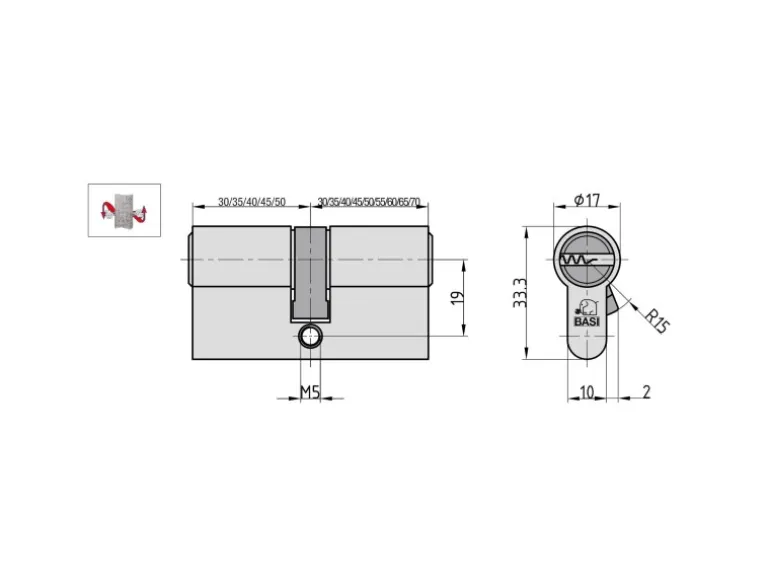 Basi – V55 – Profil-Doppelzylinder – 45/45 mm – Gleichschließend – Not- und Gefahrenfunktion