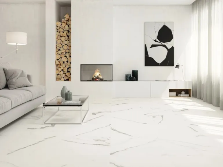 Weiße Bodenfliese erzeugt ein zeitloses Ambiente