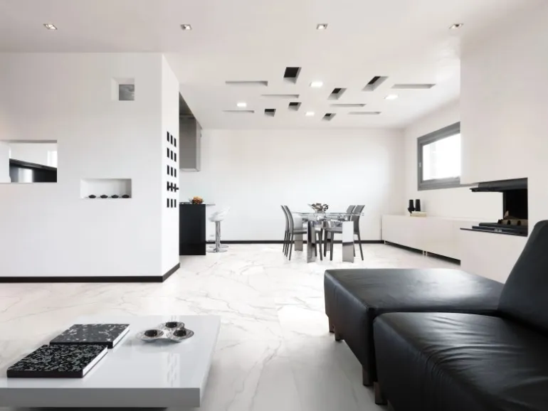Italienischer Stil mit marmorierter Optik in Weiß und Hellgrau
