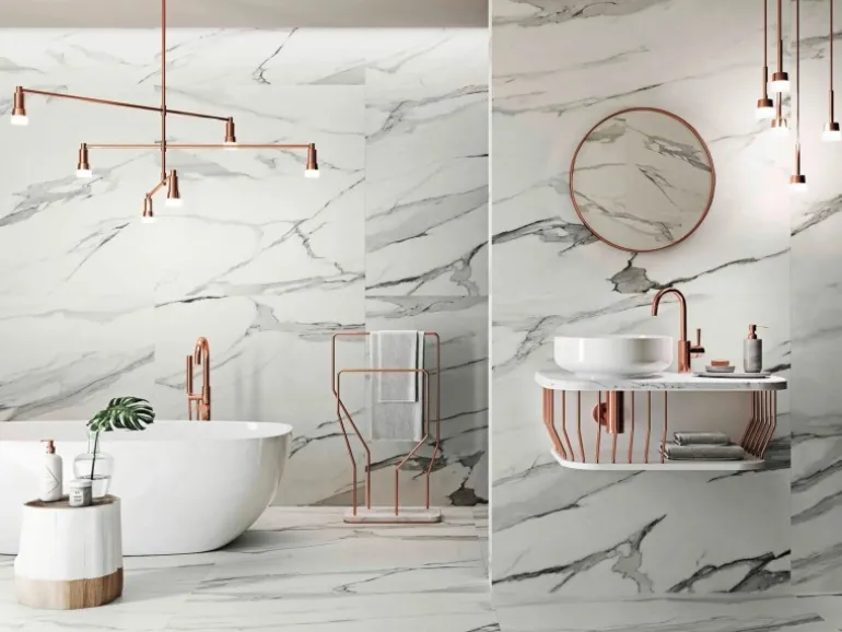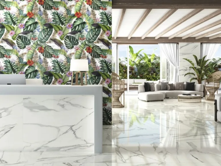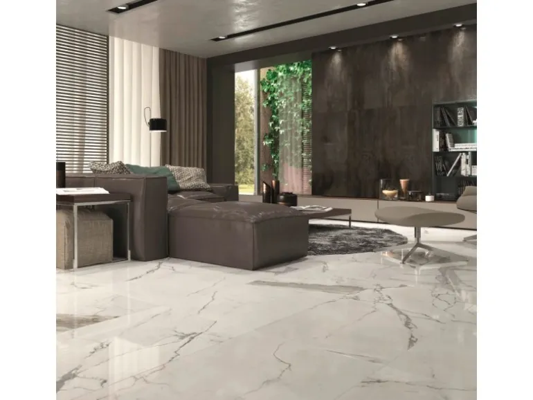 Polierte Feinsteinzeug-Fliese als Boden- und Wandbelag für den Wohnbereich