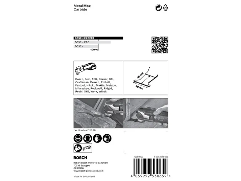 Das Bosch Expert Tauchsägeblatt für Metall hält bis zu 50-mal länger als ein Bosch AIZ 20 AB Blatt – Wenn gehärtete Schrauben rosten oder auf andere Weise stecken bleiben, besteht die einzige Option darin, sie flach an der Oberfläche abzuschneiden. Der Expert MetalMax macht auch in gehärtetem Metall einen perfekten bündigen Schnitt. Mit seiner herausragenden Langlebigkeit ist es das perfekte Zubehör für Handwerker, die harte Materialien mit einem Multifunktionswerkzeug schneiden möchten. Der Expert MetalMax ist das Neueste, was die Bosch Carbide Technology zu bieten hat. Die Zähne bestehen nicht nur aus einer extrem harten Metallleiste, die sogar Edelstahl schneiden kann, sie verfügen auch über eine Hightech-Zusatzbeschichtung für maximale Langlebigkeit. Die gerade Schneidkante ist zum Ablängen optimiert, da sie weniger zum Wegrutschen auf Schrauben und Rohren neigt. Sie haben gesehen, wie mühelos das Multifunktionswerkzeug in und durch Holz sägen kann: Mit dem Bosch Expert MetalMax Blatt für Multifunktionswerkzeuge kann Metall genauso zersägt werden. Es sägt sogar mühelos gehärtete Fensterschrauben und Armierungen. Starlock-Aufnahme für optimale Kraftübertragung und bequemen Blattwechsel innerhalb von 3 Sekunden.
