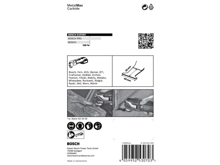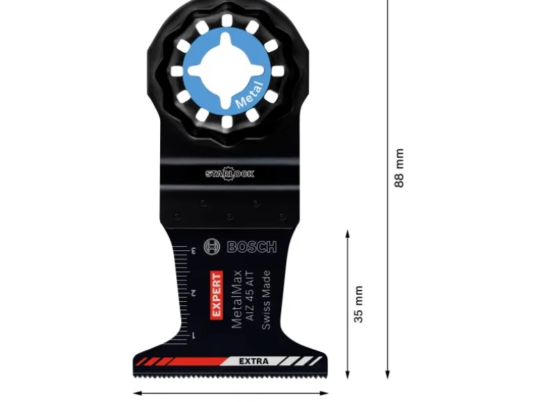 Das Bosch Expert Tauchsägeblatt für Metall hält bis zu 50-mal länger als ein Bosch AIZ 20 AB Blatt – Wenn gehärtete Schrauben rosten oder auf andere Weise stecken bleiben, besteht die einzige Option darin, sie flach an der Oberfläche abzuschneiden. Der Expert MetalMax macht auch in gehärtetem Metall einen perfekten bündigen Schnitt. Mit seiner herausragenden Langlebigkeit ist es das perfekte Zubehör für Handwerker, die harte Materialien mit einem Multifunktionswerkzeug schneiden möchten. Der Expert MetalMax ist das Neueste, was die Bosch Carbide Technology zu bieten hat. Die Zähne bestehen nicht nur aus einer extrem harten Metallleiste, die sogar Edelstahl schneiden kann, sie verfügen auch über eine Hightech-Zusatzbeschichtung für maximale Langlebigkeit. Die gerade Schneidkante ist zum Ablängen optimiert, da sie weniger zum Wegrutschen auf Schrauben und Rohren neigt. Sie haben gesehen, wie mühelos das Multifunktionswerkzeug in und durch Holz sägen kann: Mit dem Bosch Expert MetalMax Blatt für Multifunktionswerkzeuge kann Metall genauso zersägt werden. Es sägt sogar mühelos gehärtete Fensterschrauben und Armierungen. Starlock-Aufnahme für optimale Kraftübertragung und bequemen Blattwechsel innerhalb von 3 Sekunden.