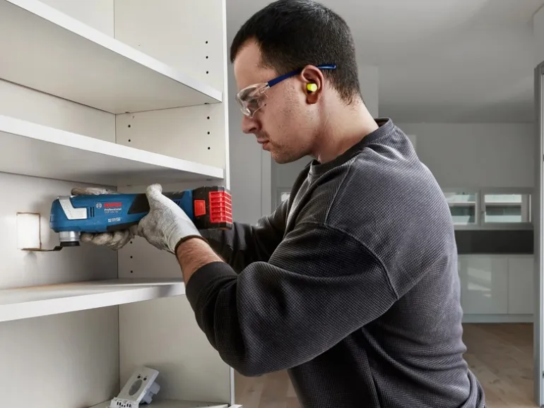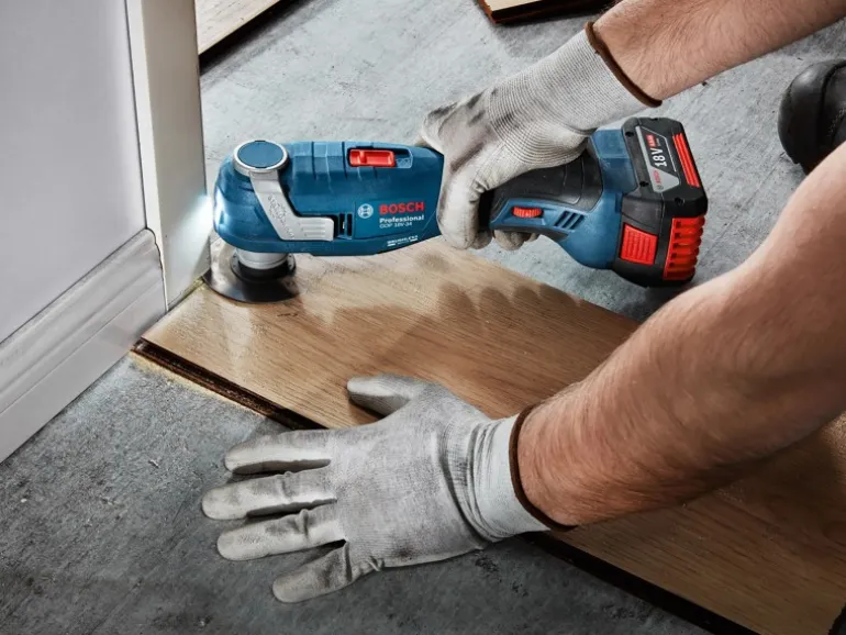 Der GOP 18V-34 ist ideal für Tauchschnitte, zum Zuschneiden und zum Schleifen von Holz. Du kannst es auch zum Schneiden von PVC oder Metall, zum Entfernen von Mörtel zwischen Fliesen oder sogar zum Abkratzen von Rückständen verwenden. Kompatibel mit allen Starlock und Starlock Plus Zubehören. Kompatibel mit dem Bosch Professional 18V System und mit der markenübergreifenden AMPShare Akku-Allianz.