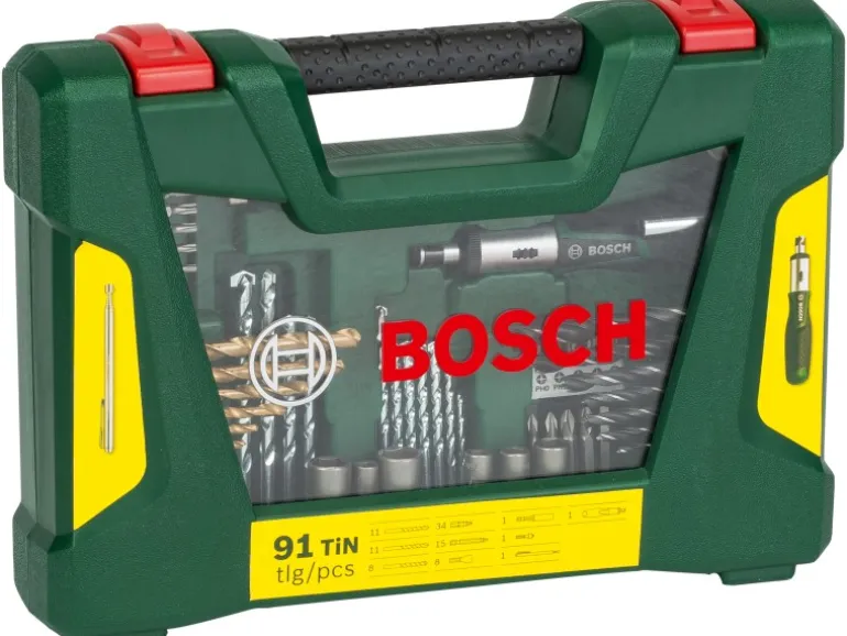 Mit dem Bosch Bohrer- und Bit-Set gelingen selbst anspruchsvolle Heimwerkerprojekte mühelos. Das Set ist für alle Werkzeugmarken geeignet. Im Lieferumfang enthalten sind außerdem ein Handschraubendreher mit Ratschenfunktion und ein magnetischer Universalhalter. Der Handschraubendreher unterstützt ein einfaches und schnelles Verschrauben. Schrauben, Nägel und andere magnetische Teile können Sie bequem mit dem Universalhalter aufheben. Die langlebigen, präzisen Bohrer sind für die unterschiedlichsten Materialien geeignet und garantieren eine sichere Befestigung. Die Schraubenbits kommen in den gängigen Schraubkopfformen und -größen und Sie erhalten 8 praktische Steckschlüssel.