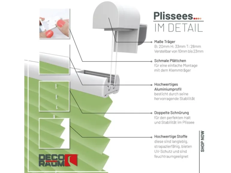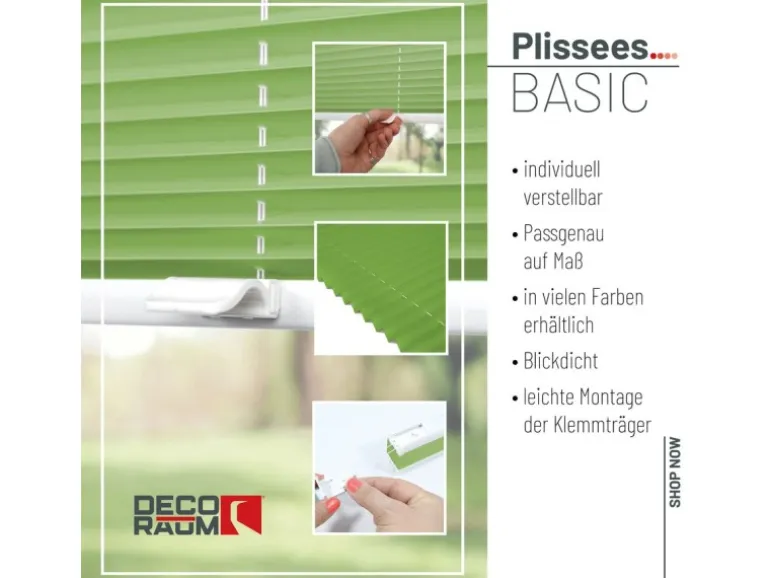 Setzen Sie auf stilvollen Sicht- und Sonnenschutz mit unserem hochwertigen Plissee im praktischen Fixmaß – ideal für Fenster sowie Balkon- und Terrassentüren.