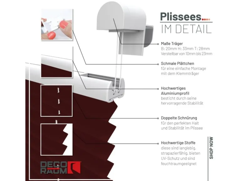 Setzen Sie auf stilvollen Sicht- und Sonnenschutz mit unserem hochwertigen Plissee im praktischen Fixmaß – ideal für Fenster sowie Balkon- und Terrassentüren.