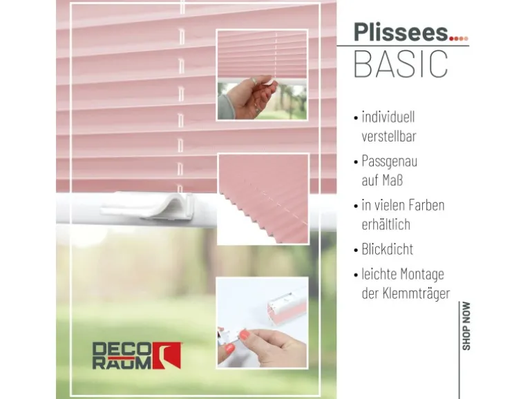 Setzen Sie auf stilvollen Sicht- und Sonnenschutz mit unserem hochwertigen Plissee im praktischen Fixmaß – ideal für Fenster sowie Balkon- und Terrassentüren.