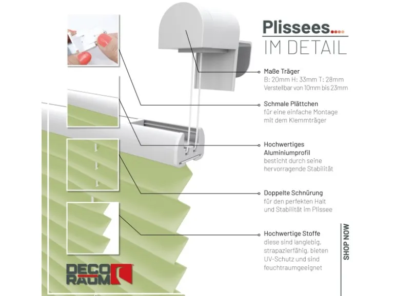 Setzen Sie auf stilvollen Sicht- und Sonnenschutz mit unserem hochwertigen Plissee im praktischen Fixmaß – ideal für Fenster sowie Balkon- und Terrassentüren.