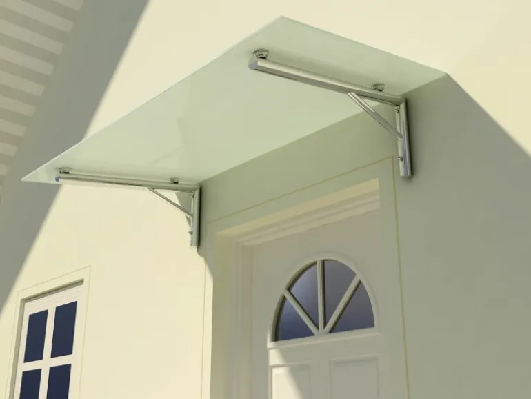 Unser Glasvordach bringt neuen Glanz an Ihr Haus. Durch die Kombination aus Funktionalität und modernes Design veredelt es jede Häuserfront. Das Verbundsicherheitsglas (VSG), besteht aus zwei Glasscheiben, die durch eine klare PVB-Folie fest miteinander verbunden sind. Die Glaspunkthalter, Zugstangen sowie Wandhalterungen bestehen aus hochwertigem Edelstahl (V2A). Durch die gehärtete Glasoberfläche entsteht keine Angriffsfläche für Moos, Ablagerungen und Kratzer. Das Glasvordach lässt sich zudem unter einem Neigungswinkel von 6 Grad montieren. Die Befestigungsausführung ist für hohe Kräfte optimal konstruiert. Unsere modernen Glasvordächer passen zu jedem Wandtyp, ganz egal ob Klinker, Putz oder Fachwerkhaus mit Dämmung. Durch die stabile Verarbeitung beträgt die Schneelast 120 kg pro m2.