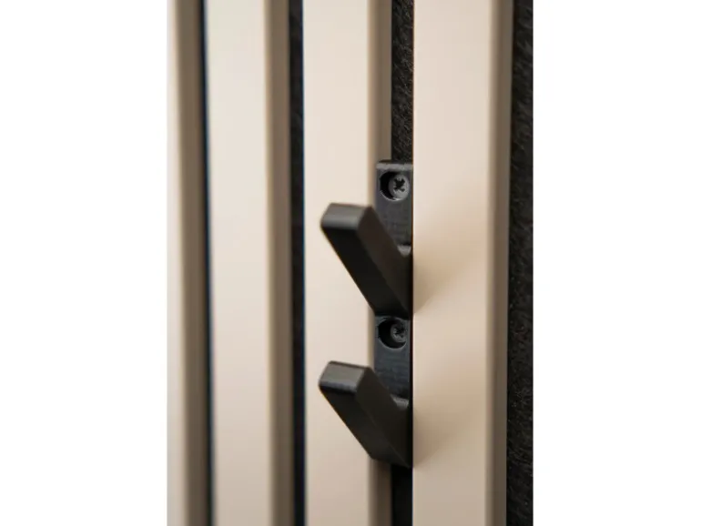 Die Denpanels 3D Haken in Schwarz 2 Stück bieten die Möglichkeit, Akustik, Ästhetik und Funktionalität miteinander zu verbinden. Mit diesen Haken und verschiedenen Halterungen können Sie Regale und Haken anbringen, unabhängig davon, ob Ihre Paneele vertikal oder horizontal angeordnet sind. Dadurch eröffnen sich neue Gestaltungsmöglichkeiten für Ihre Akustikpaneele mit dem Zubehörprogramm von Denpanel.