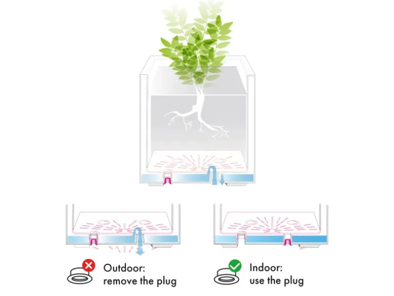 Die doppelwandige Konstruktion und die soliden Kanten bieten eine robuste Struktur für eine lange Lebensdauer. Zusätzlich ermöglicht der Stöpsel am Topfboden eine flexible Nutzung sowohl im Innen- als auch im Außenbereich.