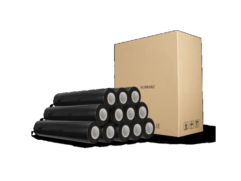 Schwarze Stretchfolie mit 23 my reißfest und flexibel, ideal für schwere und sperrige Güter