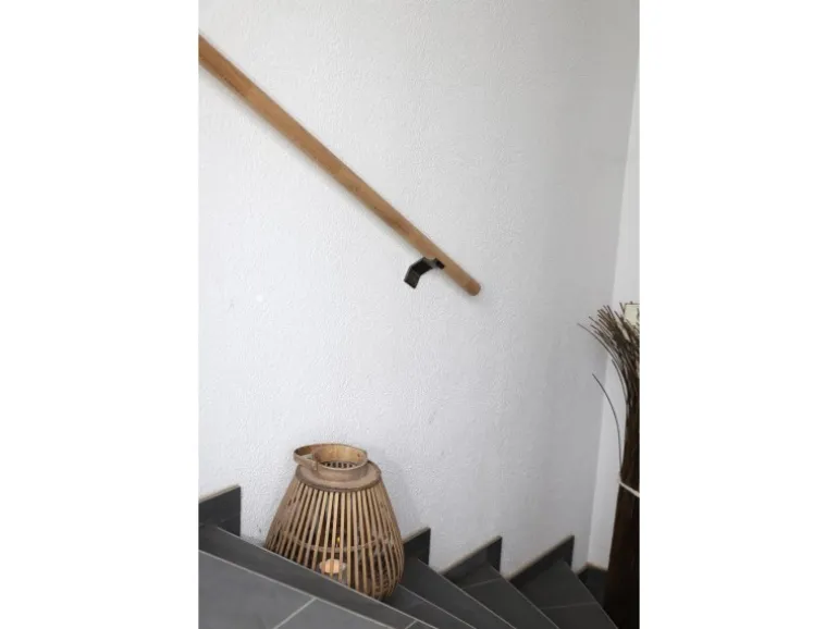 Der naturbelassene Handlauf besticht durch seine authentische Holzstruktur und fügt sich nahtlos in verschiedenste Einrichtungsstile ein. Die hochwertige Verarbeitung des Eichenholzes unterstreicht den charaktervollen Ausdruck des Materials und verspricht eine dauerhafte Nutzungsfreude.