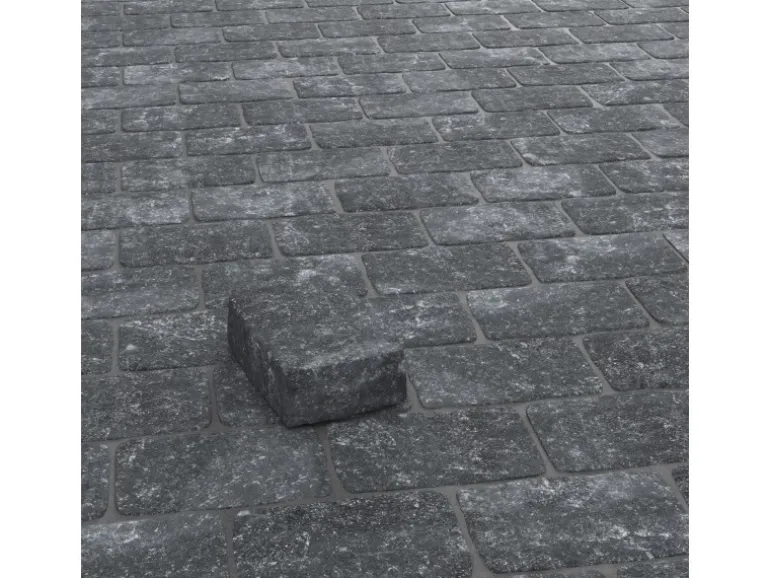 Die Kanten und Ecken des Pflastersteins werden durch das sogenannte Kollern unregelmäßig gebrochen. So wirken die Steine, als seien sie von Hand bearbeitet und verleihen dem Stein eine rustikale und antike Optik. Bitte beachten Sie, dass die gebrochenen Kanten dadurch auch größer ausfallen oder auch Abplatzungen entstehen können. Um Wasseransammlungen zu verhindern sollte ein Fugenabstand von 3 mm – 5 mm eingehalten werden.