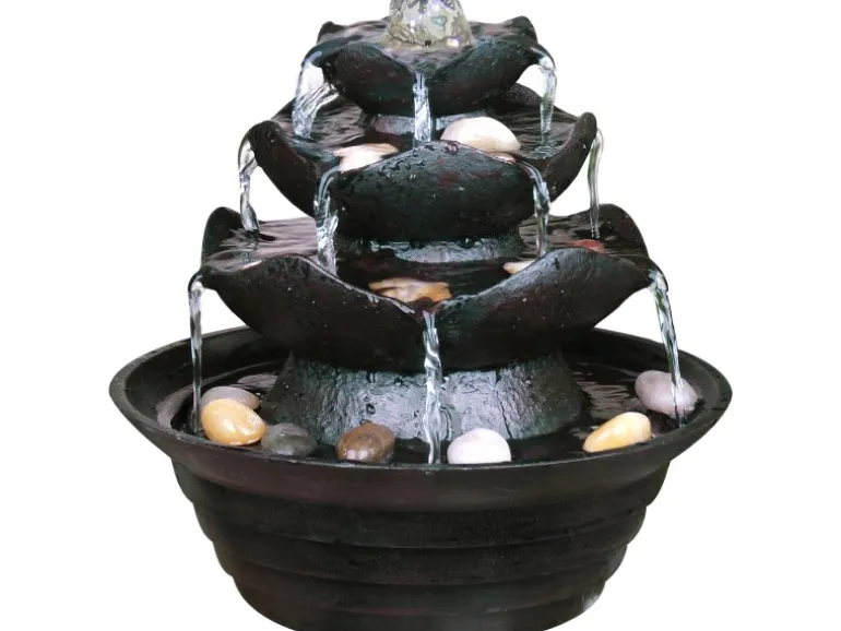Über vier Ebenen fließt das Wasser leise plätschernd nach unten. Stellen Sie sich vor, wie Sie das Plätschern des Wasserfalls genießen können. Die beruhigende akustische und optische Wirkung auf Ihren Geist lädt zur Entspannung ein. Sie sorgt für eine regelrechte Wohlfühlatmosphäre, welche auch im Büro bei der Arbeit angewandt werden kann und Sie klarer denken lässt.