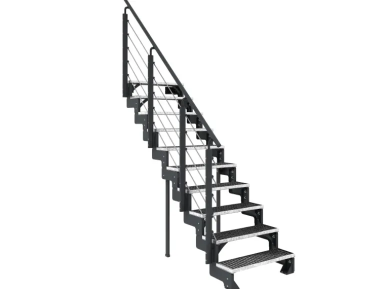 Mit 10 Stufen werden Höhen von 180 bis 220 cm überbrückt. Die Anpassung erfolgt durch das Einstellen der Steigungshöhe pro Stufe.