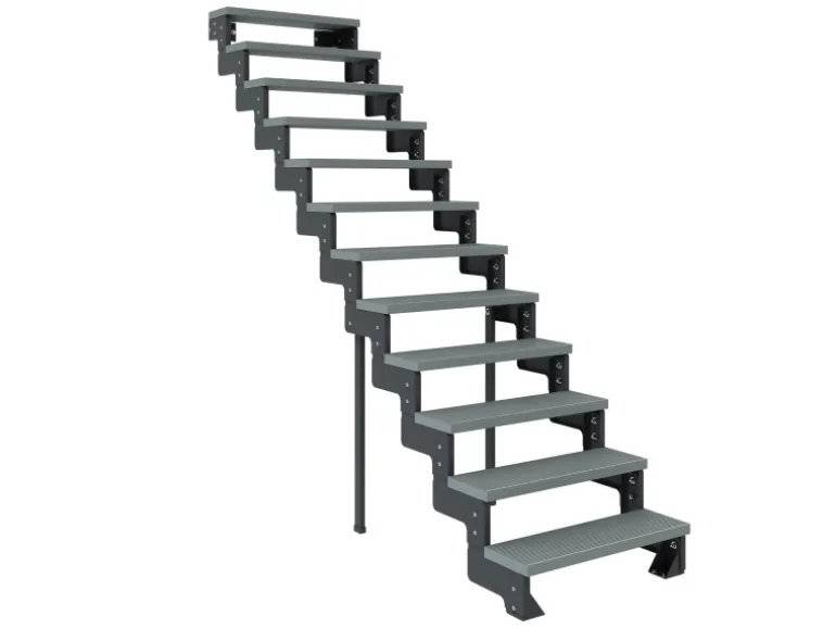 Für die Standfestigkeit der Außentreppe ist ein frostfreies und 80 cm tiefes Fundament mit einer Größe von 40 cm x 40 cm zwingend erforderlich.