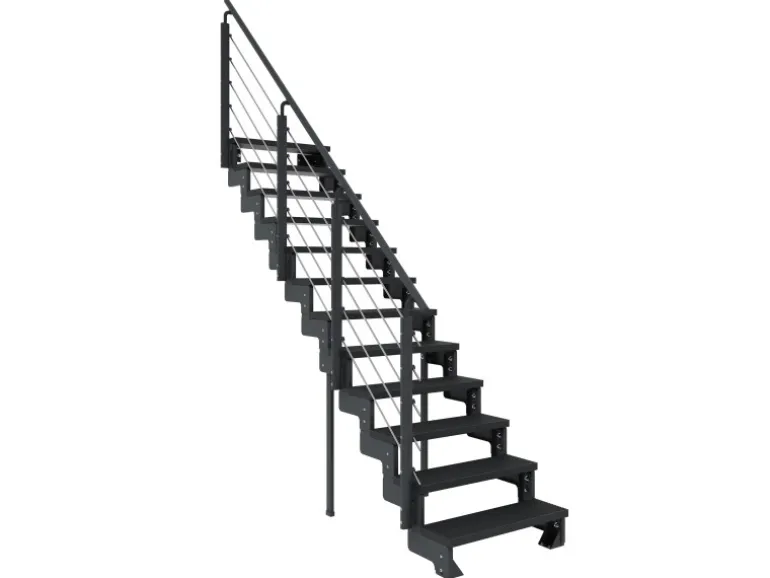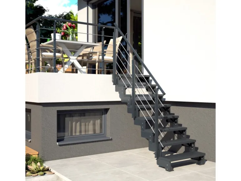 Für die Standfestigkeit der Außentreppe ist ein frostfreies und 80 cm tiefes Fundament mit einer Größe von 40 cm x 40 cm zwingend erforderlich.
