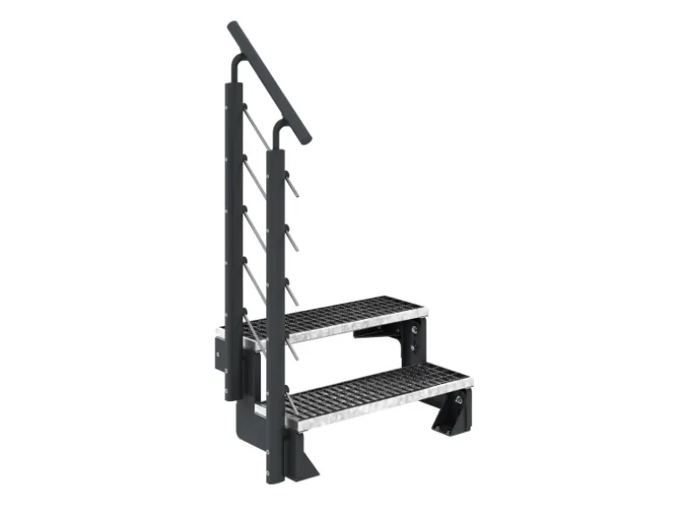 Für die Standfestigkeit der Außentreppe ist ein frostfreies und 80 cm tiefes Fundament mit einer Größe von 40 cm x 40 cm zwingend erforderlich.