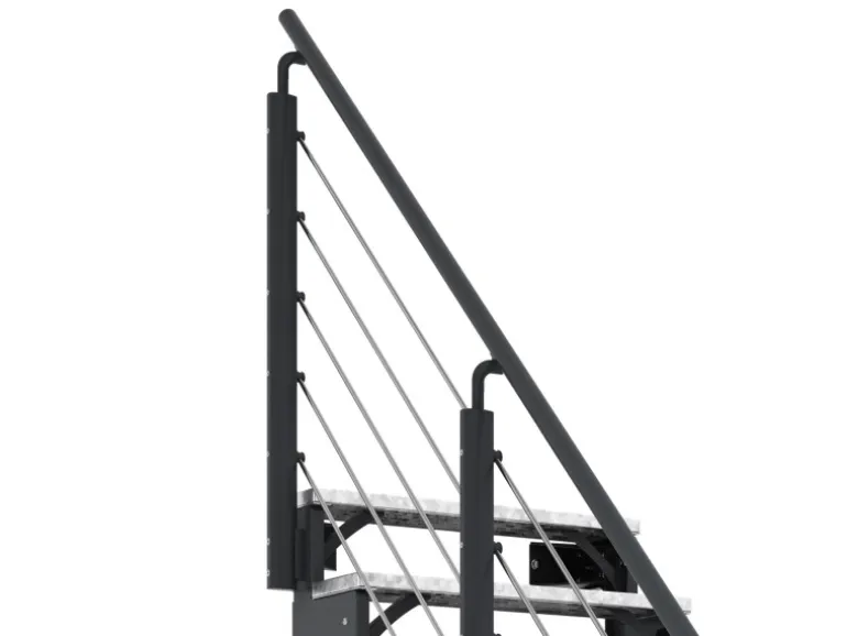 Für die Standfestigkeit der Außentreppe ist ein frostfreies und 80 cm tiefes Fundament mit einer Größe von 40 cm x 40 cm zwingend erforderlich.