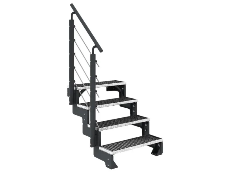 Für die Standfestigkeit der Außentreppe ist ein frostfreies und 80 cm tiefes Fundament mit einer Größe von 40 cm x 40 cm zwingend erforderlich.