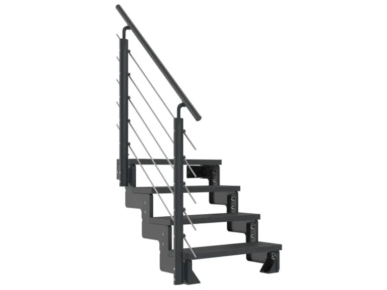 Für die Standfestigkeit der Außentreppe ist ein frostfreies und 80 cm tiefes Fundament mit einer Größe von 40 cm x 40 cm zwingend erforderlich.