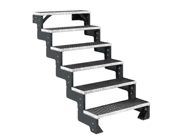 Mit 6 Stufen werden Höhen von 108 bis 132 cm überbrückt. Die Anpassung erfolgt durch das Einstellen der Steigungshöhe pro Stufe.