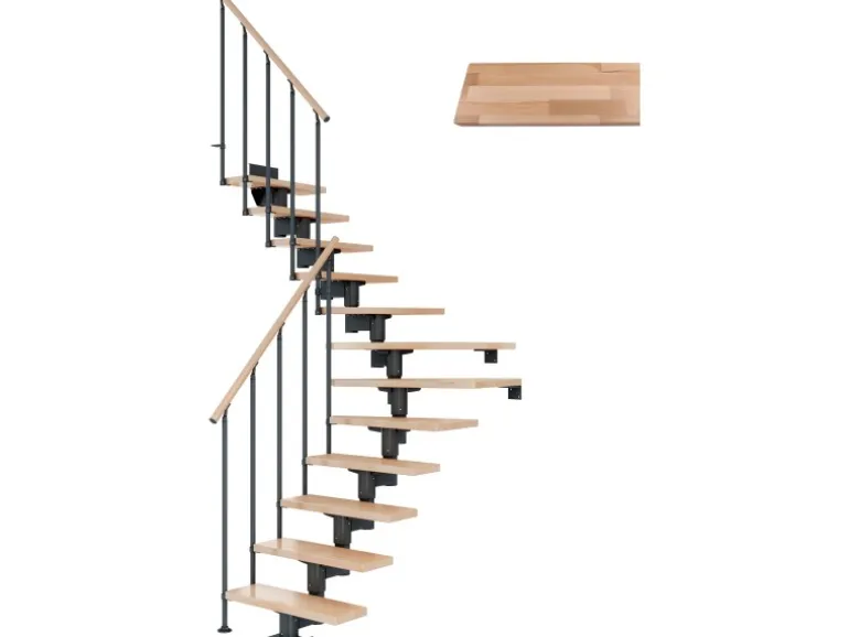 Stufenanzahl/-Material: 13 Stufen, Buche, lakiert