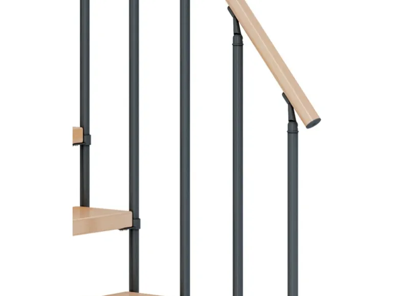 Dieses Nebentreppenmodell mit geraden Stufen eignet sich besonders gut für den Selbsteinbau. Das moderne Design macht diese Treppe mit Mittelholm zu einem idealen Wohnraumgestalter für kleinere Räume.