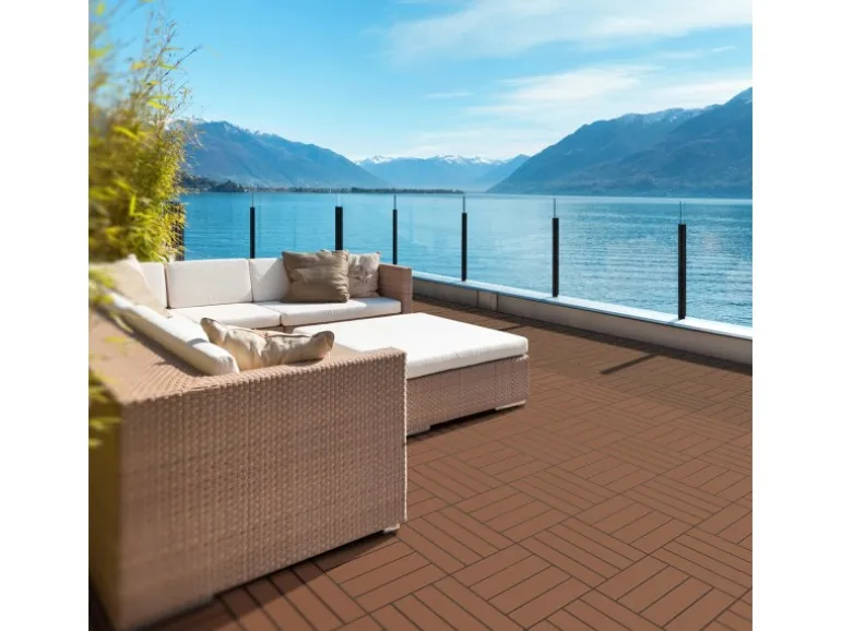 ECD Germany WPC Terrassenfliesen 30×30 cm 11Er Spar Set Hellbraun in Holzoptik