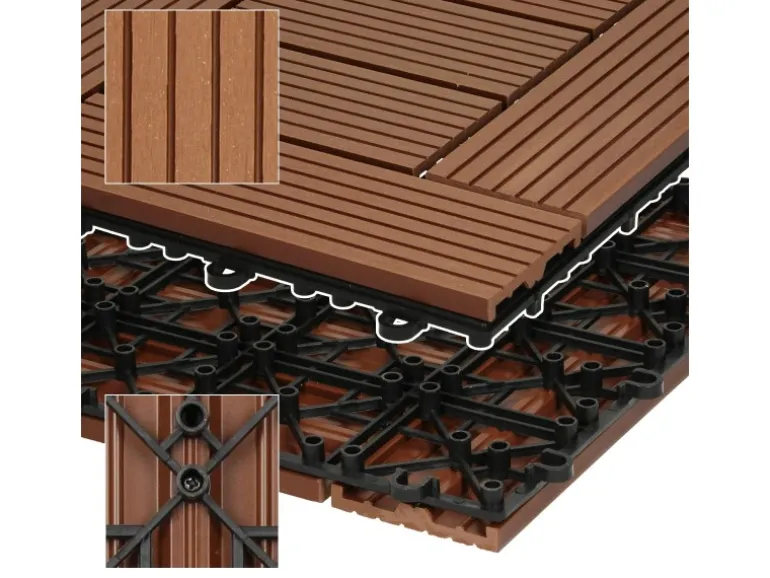 ECD Germany WPC Terrassenfliesen 30×30 cm 33er Spar Set Hellbraun Mosaik