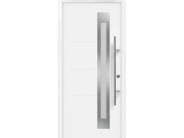 Profitieren Sie von höchster Qualität aus Deutschland. Die Motive mit Verglasungsausschnitt verfügen über ein Drei-Scheiben-Isolierglas, was nicht nur für optimale Wärmedämmung sorgt, sondern auch das Verletzungsrisiko bei Glasbruch stark minimiert. Der elegante Langgriff auf der Außenseite und die formschönen Drücker auf der Innenseite der Tür bestehen beidseitig aus hochwertigem Edelstahl und sorgen dadurch für eine lange Lebensdauer.