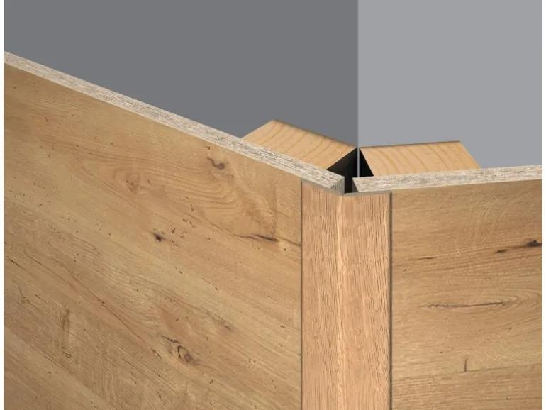 Die Faltleiste von Egger ist die ideale Lösung für schwierige Ecken und unregelmäßige Geometrien, die eine Anpassung erfordern. Mit einer Länge von 2.400 mm und 2 gleichlangen Schenkeln von je 22 mm kann die faltbare Leiste flexibel angepasst werden und schafft attraktive Übergänge. Sie eignet sich als Wand- oder Deckenleiste für Übergänge zur Dachschräge, als Außenecke und zur optimalen Abdeckung von Innenecken. Die Faltleiste wird schnell und einfach per Nageln oder Kleben montiert.