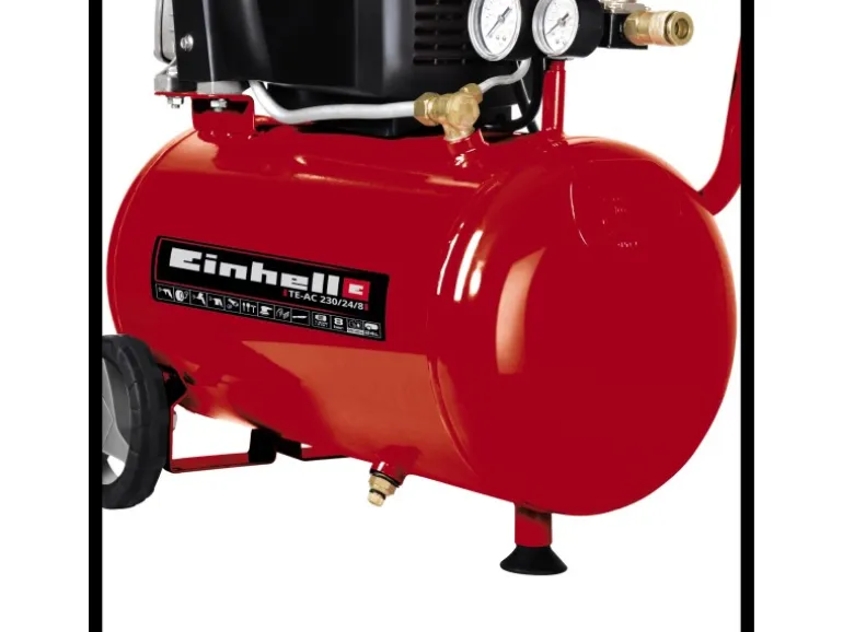 Sowohl Rückschlag- als auch Sicherheitsventil sorgen für die sichere Bedienung des TE-AC 230/24, während die großen Räder und der Haltebügel den einfachen Transport gewährleisten.