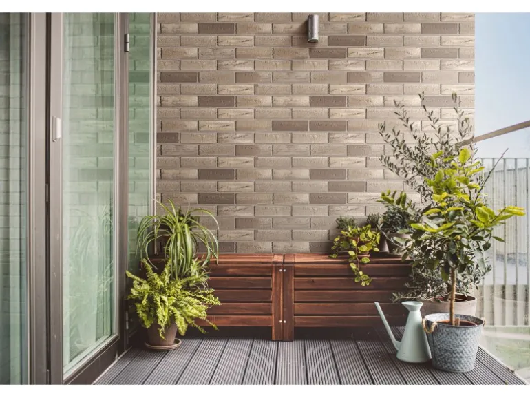 Der Eckverblender hat eine geringe Stärke von 3 bis 4 mm und kann auf nahezu jedem stabilen Untergrund angebracht werden. Als Basismaterial dient hochwertiger Quarzsand, und das Produkt wird handgefertigt, um ein authentisches Aussehen zu gewährleisten. Der gebrauchsfertige Klebemörtel, nicht im Lieferumfang enthalten, sorgt für perfekten Halt. Zudem stellt er zugleich die Fugenfarbe dar, wodurch ein Nachverfugen überflüssig wird.